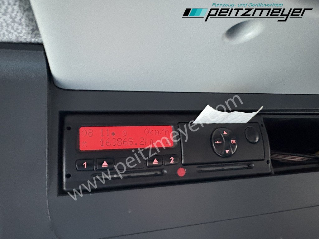 1. Hand, Kofferaufbau, Heckportaltüren, Abgasnorm Euro 5, digitaler Tachograph, Radio mit CD, Sonnenblende außen, Colorverglasung, Dachspoiler, Nahverkehr Fahrerhaus, 4 Zylinder Reihenmotor, Tempomat, Dachluke, Zentralverriegelung, Fensterheber elektr., Spiegel elektr. verstellbar, Spiegelheizung, Fahrersitz luftgefedert, Schaltgetriebe 6-Gang, Diff.-Sperre Hinterachse, Vorderachse blattgefedert, Hinterachse blattgefedert, Umweltplakette: 4(Grün), Diesel, Schadstoffklasse: Euro5, Hinterachsenantrieb, keine Klimaanlage, Grundfarbe: weiß