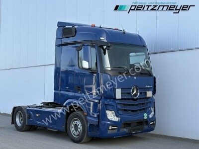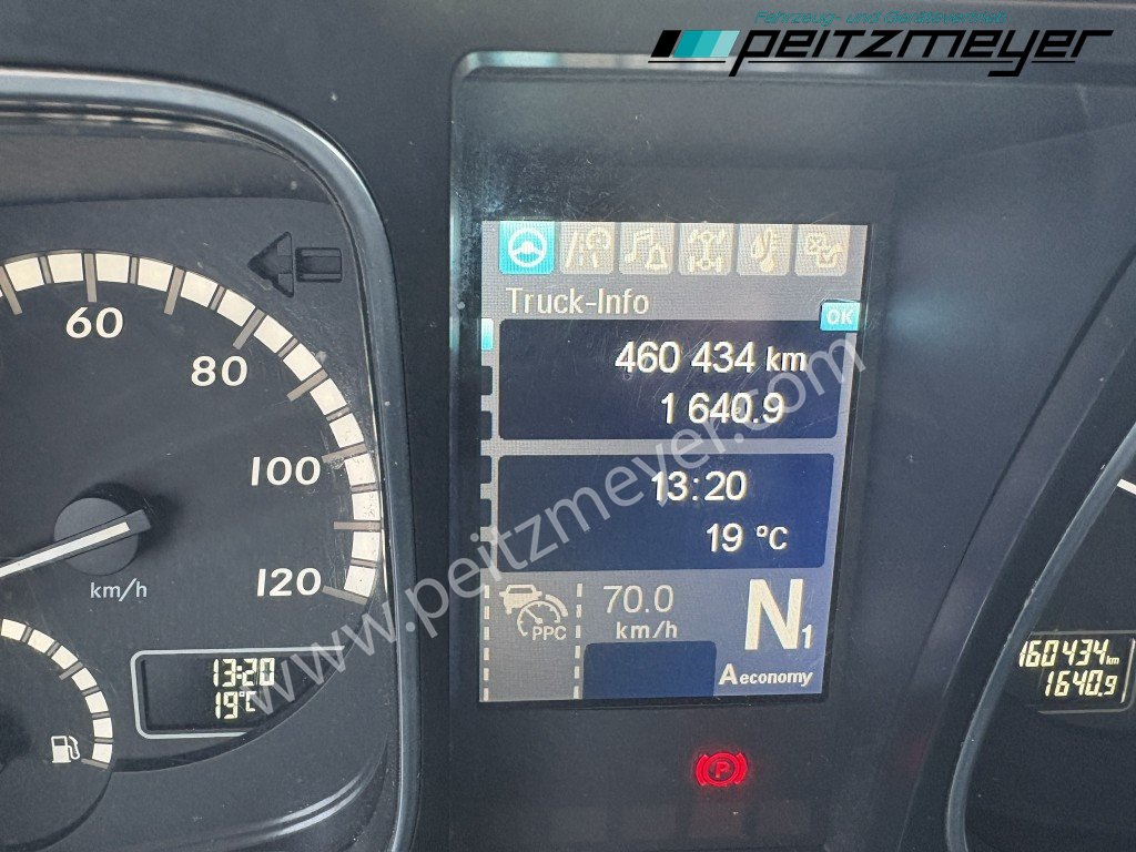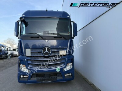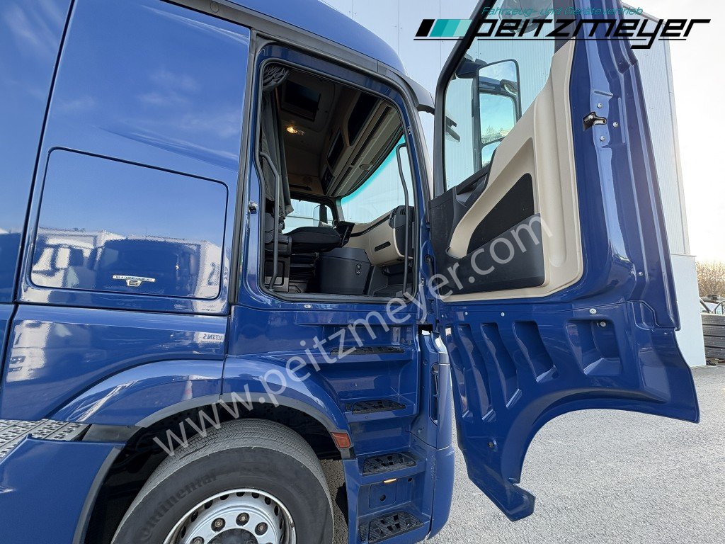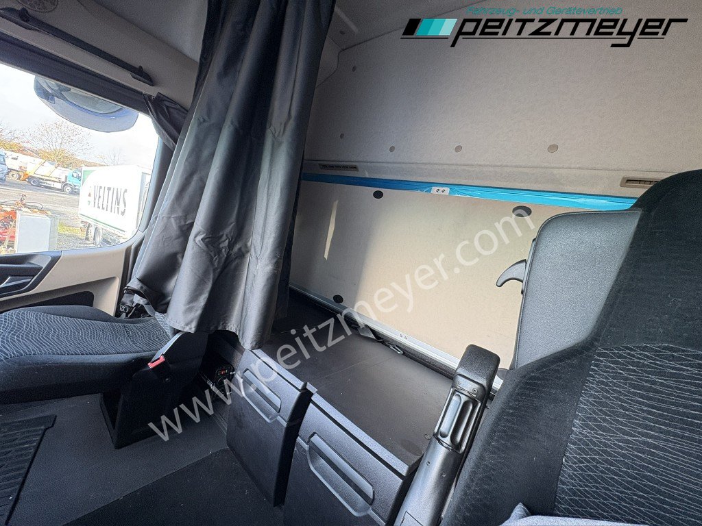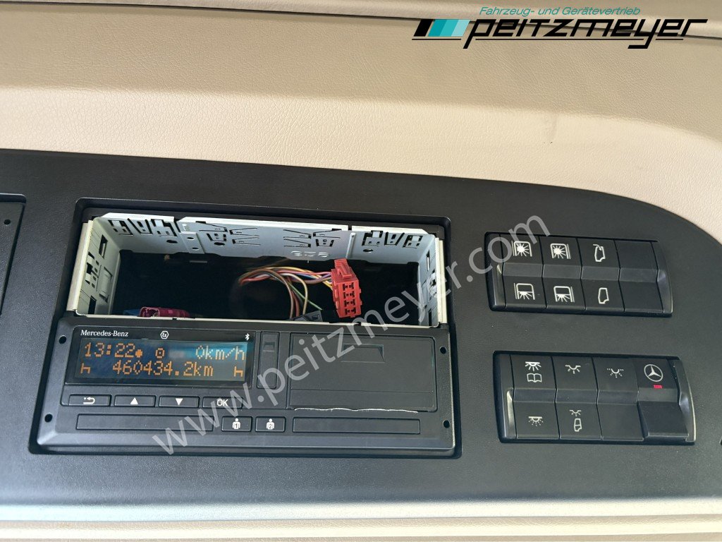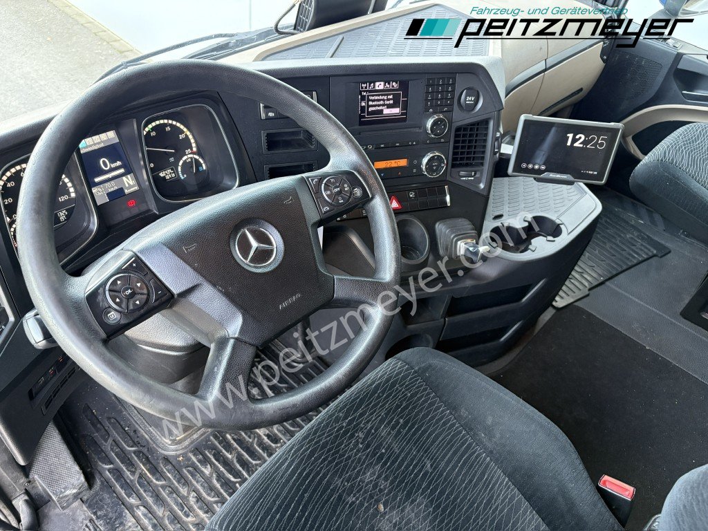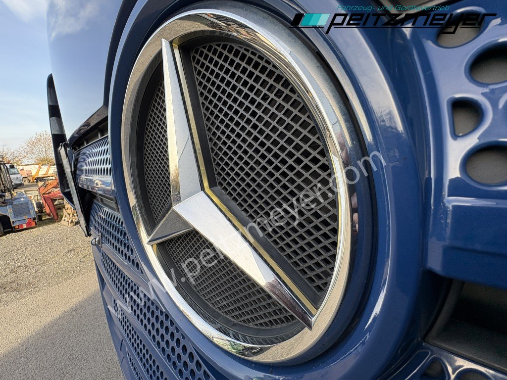 Abgasnorm Euro 6, digitaler Tachograph, Fahrerairbag, Radio mit CD, Multifunktionslenkrad, Mercedes Stern beleuchtet, Dachspoiler, Seitenspoiler, Fahrerhaus Stream Space, Sicherungsautomaten, Tempomat, Abstandshalte-Assistent, Spurhalteassistent, Stabilitätsregel-Assistent, Aufmerksamkeits-Assistent, PPC (Predictive Powertrain Control), Standklima, Warmwasser-Zusatzheizung, Zentralverriegelung mit Fernbedienung, Fensterheber elektr., Spiegel elektr. verstellbar, Spiegelheizung, Fahrersitz luftgefedert, Klimaautomatik, Ambientebeleuchtung, Mercedes-Benz Powershift 3 (Automatikgetriebe), Hinterachse luftgefedert, Vorderachse blattgefedert, Sekundär Retarder, elektrische Sonnenrollos, Kühlschrank, Komfortschließanlage, Lufthörner, Tank 430 L, links, Tank 570 links, 650 x 700 x 1450 mm Alu, Reifendruckkontrolle , Aktiver Brems Assistent, Sitzheizung Fahrersitz, Vorderachse 8,0 t., Achslastmeßeinrichtung, Wankregel - Assistent, Abbiegeassistent, Umweltplakette: 4(Grün), Automatikgetriebe, Grundfarbe: blau, Diesel, Schadstoffklasse: EURO6, Hinterachsenantrieb, Klimaautomatik