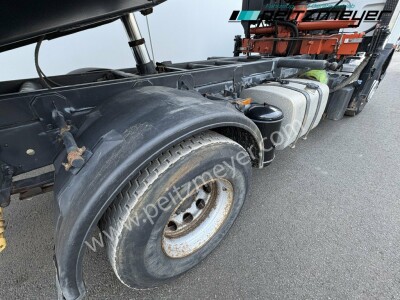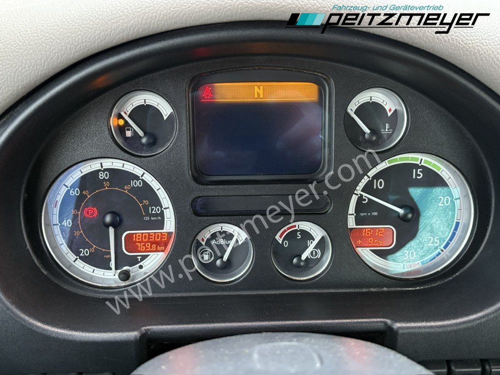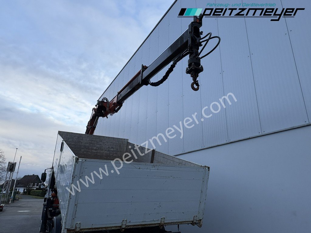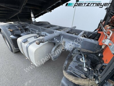 2. Hand, Kran hinter Fahrerhaus, 3-Seiten-Kipper, digitaler Tachograph, Radio mit CD, Rückwandfenster, Drucklufthörner, Fahrerhausdach, Colorverglasung, Auspuff hinter dem Fahrerhaus, Nahverkehr Fahrerhaus, schaltbarer Nebenantrieb, 6 Zylinder Reihenmotor, Betriebsstundenzähler, ABS, Dachluke, Fensterheber elektr., Fahrersitz luftgefedert, Klimaanlage, Automatikgetriebe 12 Gang, Diff.-Sperre Hinterachse, blattgefedert, Anhängerkupplung Maul, 2-Leiter Luftanschluss, Anhängersteckdose 15 polig, 40er Bolzen, Fahrerairbag, Multifunktionslenkrad, Abgasnorm Euro 5, Umweltplakette: 4(Grün), Automatikgetriebe, Diesel, Schadstoffklasse: Euro5, Hinterachsenantrieb, Klimaanlage, Grundfarbe: weiß