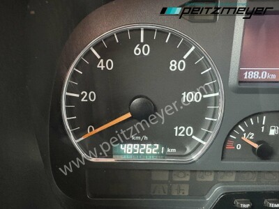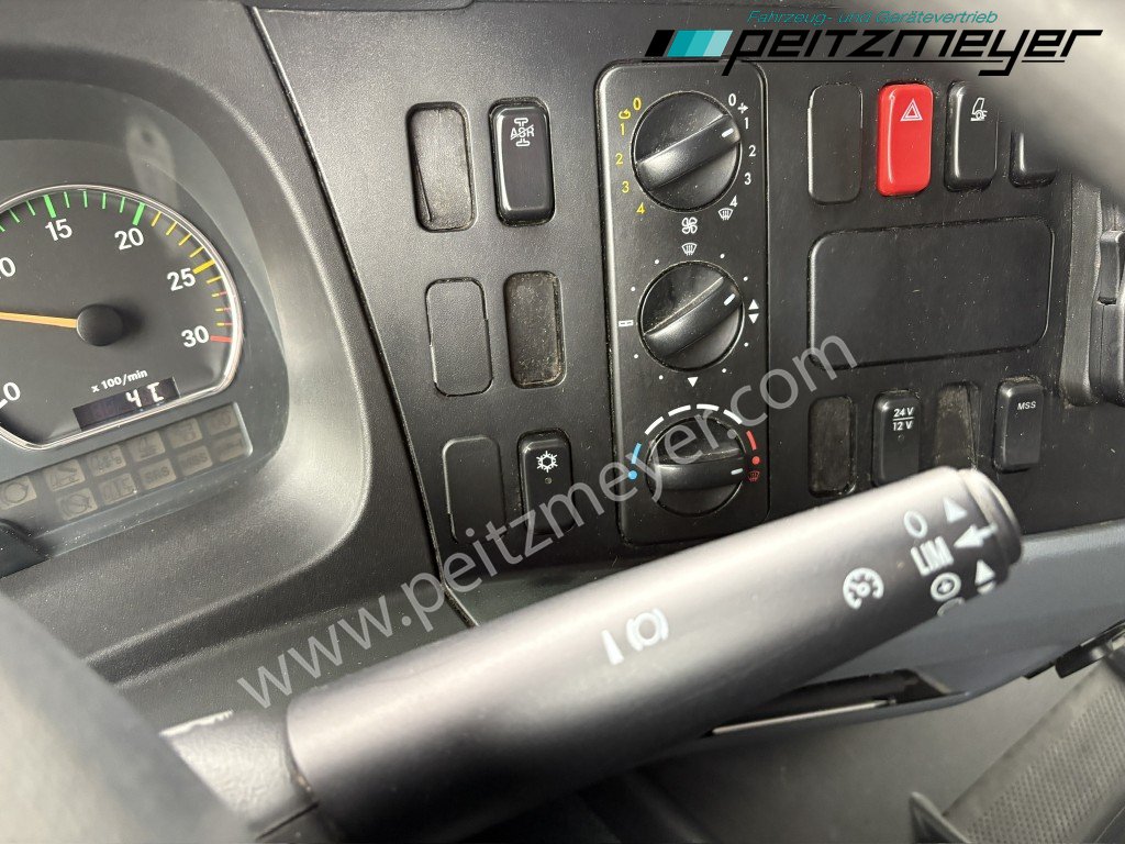 Vorderachse 5,3 t., Anhängerbremse 2-Leitung (EG), Telligent-Bremssystem mit ABS, Scheibenbremse an VA und HA, Rahmenüberhang verlängert 200 mm, Dachluke/Lüftungsklappe Dach, Schalter für Ladebordwand, Sicherungsautomaten, Anhängersteckdose 15-polig, Steckdose 12 V an Instrumententafel, Fahrerhaus S (kurz), Sonnenblende außen durchsichtig, Wärmedämmende Verglasung rundum, elektr. Fensterheber Fahrer- und Beifahrerseite, Ablage auf Motortunnel, Standardluftleitkörper auf Fahrerhaus-Dach, Ablage über Windschutzscheibe, Spiegel an Fahrerseite, elektrisch verstellbar, Frontspiegel aerodynamisch, vorne, Zentralverriegelung mit Funk-Fernbedienung, Getriebe G 85-6/6,7-0,73, Getriebeschaltung mechanisch, Klimaanlage, Radstand 4760 mm, Tachograf, dig.EG, Drehzahlschr.+ Zusatz, Haupttank 180 l, Schlußleuchte für Anbau Ladebordwand, Elektrik für Fremdaufbau, Motorbremse mit Konstantdrossel, Tempomat, Motor-Start/Stop - Anlage, Motor, R 6, LA, 175 KW (238 PS), 2200/MIN, Motor - Euro 5, Anhängerkupplung, Fabrikat Ringfeder, Vorderfeder 4,7 t, parabel, Querträger f. nachträglichen Einbau AHK G145 ZAA, Anhängerkupplung G 145 für ZAA, Fahrerschwingsitz Komfort, Grammer, Gewichtsvariante 11,99 t (4,4/8,1), Umweltplakette: 4(Grün), Diesel, Schadstoffklasse: Euro5, Hinterachsenantrieb, Klimaanlage, Grundfarbe: weiß