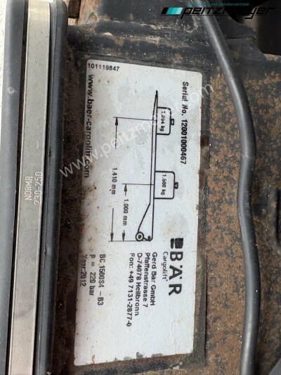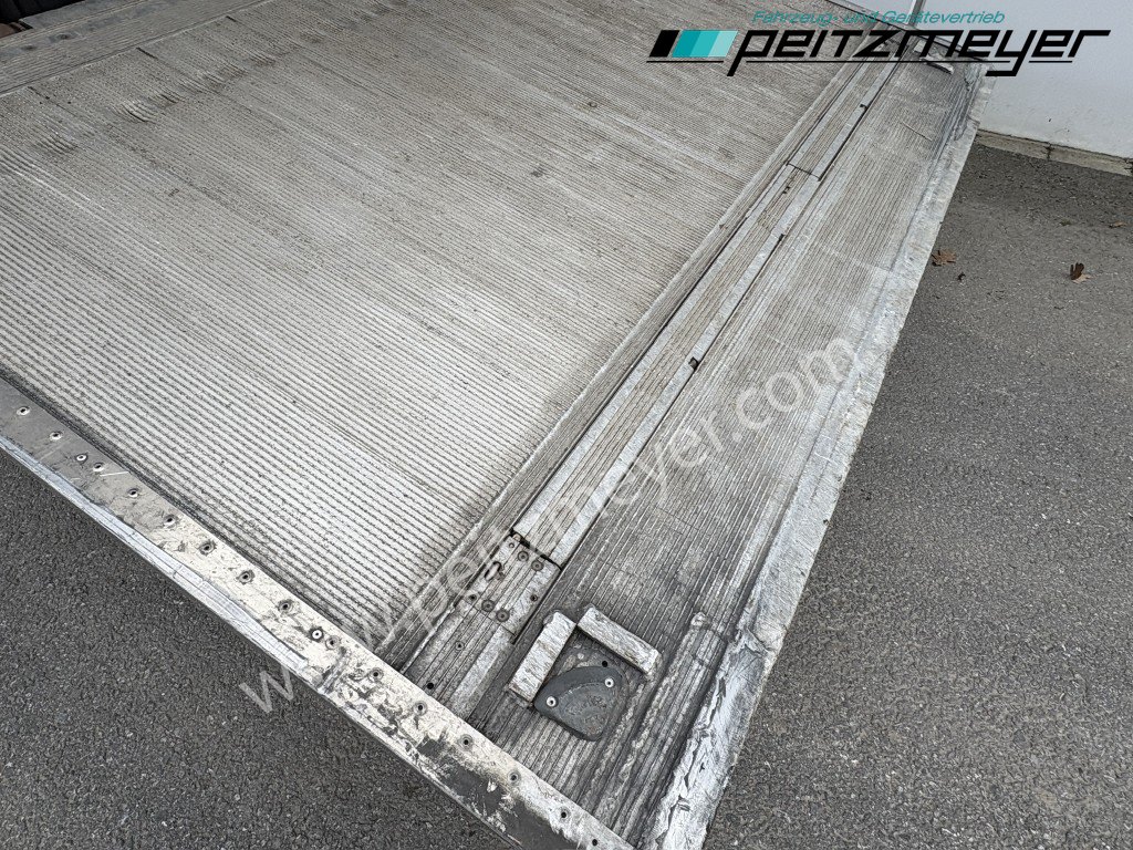 Aufbautyp: Junge Pritschenaufbau L x B x H 7.205 x 2.470 x 2.600 mm, Hilfsrahmen verzinkt, Ladebordwand BÄR BC 1.500 KG, Alublatt 1.800 mm, Edscha - Schiebedach, Schiebeplane rechts und links ( beschriftet )