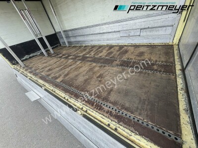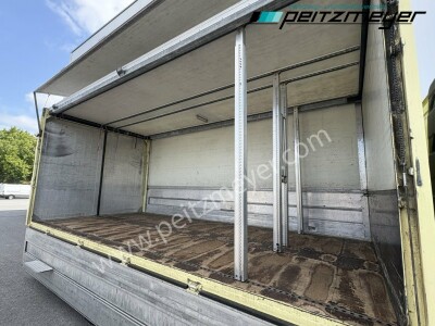 Aufbautyp: Ewers Getränke Schwenkwandaufbau L x B x H 5.220 x 2.490 x 2.070 mm, Heckportaltüren, 4 reihige Ladungssicherung, AHK Kugelkopf (3.500 kg) + Maulkupplung mit 40 mm Zugöse (11.250 kg), Hinterachse luftgefedert, Klima, 3 Sitzer