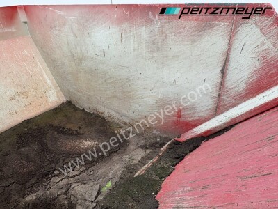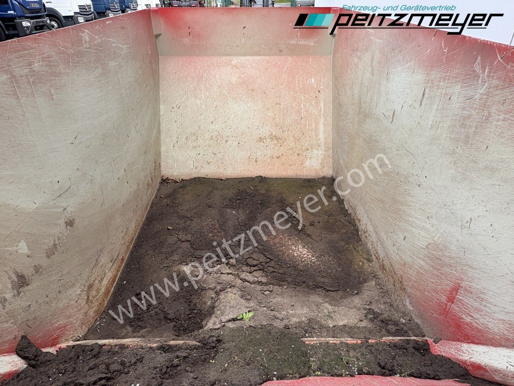 Aufbautyp: Absetzmulde Sastra - AMK, Inhalt: ca. 7 m³, Asymmetrische Form mit Einfach-Kipplager an der Schüttkante, Aufnahmebeschläge für Absetzsystem nach DIN 30720, Boden 6 mm, Seiten 4 mm, alle Ecken verstärkt, Netz- und Planhaken umlaufend, mehrfach vorhanden - auch ohne Klappe