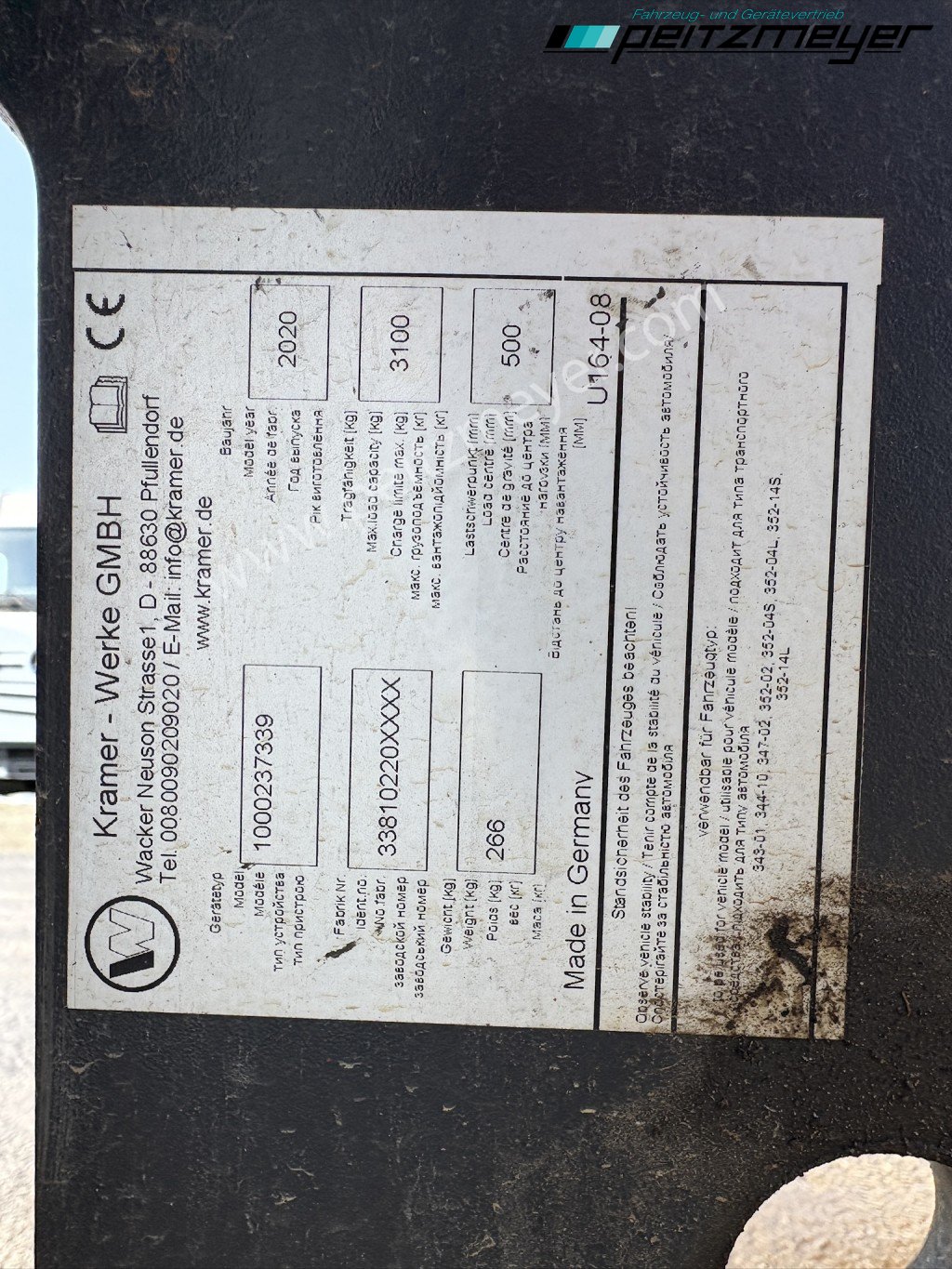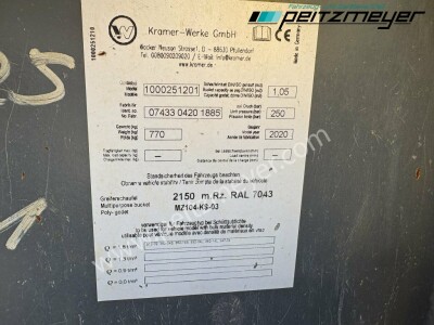 Aufbautyp: Radlader Kramer 8115, Baujahr 2020, original 1.897 h, 4 Zylinder Deutz Motor mit 74,4 KW / 101 PS, Allradlenkung 4x4x4, Klimaanlage, Radio, 40 km/h Zulassung, Schwingsitz, heizbare Heckscheibe, Bereifung kpl. NEU, höhenverstellbare AHK mit Elektrik 7 polig, hydraulischer Schnellwechsler, Hydraulikanschluß für Kippanhänger hinten, 4 in 1 Schaufel mit Schneide, Palettengabel, verlängerte Hubschwinge, Service ( große Inspektion vor 32 Betr.Std. neu !! )