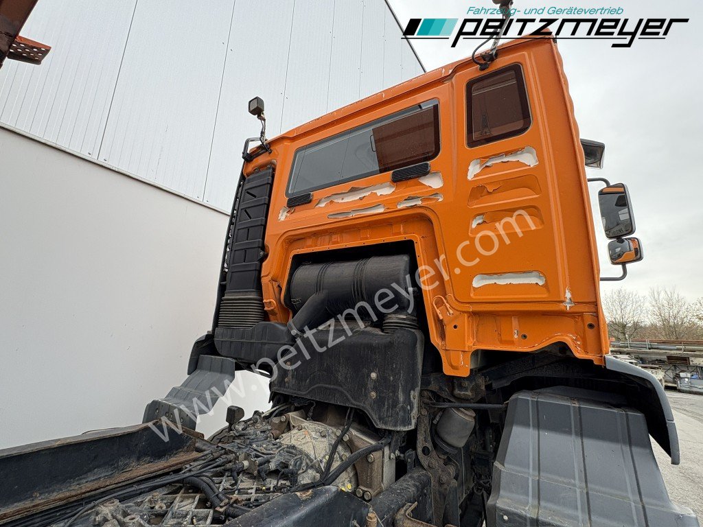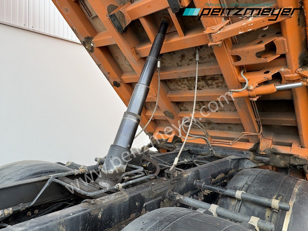 Bordmatic links, 3-Seiten-Kipper, Abgasnorm Euro 4, Radformel 6x6, digitaler Tachograph, Radio, Sonnenblende außen, klappbarer Unterfahrschutz, Stahlstoßstange, Fahrerhaus mittellang, Kupplungspedal, schaltbarer Nebenantrieb, Kipphydraulik, Kraftstofftank 400L, Aluminium, 6 Zylinder Reihenmotor, Tempomat, Dachluke, Zentralverriegelung, Fensterheber elektr., Spiegel elektr. verstellbar, Spiegelheizung, Fahrersitz luftgefedert, Klimaanlage, Schaltgetriebe 16-Gang, Allradantrieb, Diff.- Sperre Vorderachse, Diff.-Sperre Hinterachse, Längs- u. Quersperren, Verteilergetriebe, Geländeuntersetzung, Allrad, zuschaltbar, Hinterachse luftgefedert, Vorderachse blattgefedert, Anhängerkupplung Maul, 2-Leiter Luftanschluss, Duomatik Luftanschluß, Hydraulikanschluss für Anhänger, Anhängersteckdose 15 polig, Anhängersteckdose ABS, 50er Bolzen, Fahrerhauslagerung, Komfort, luftgefedert, Umweltplakette: 4(Grün), 6 x 6, Diesel, Schadstoffklasse: Euro4, Klimaanlage, Grundfarbe: orange