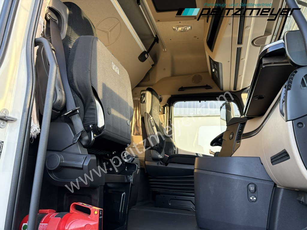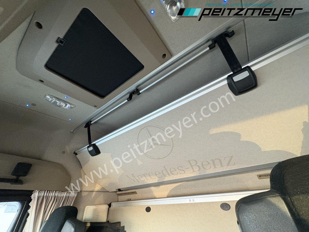 1. Hand, Abgasnorm Euro 6, digitaler Tachograph, elektrische Sonnenrollos, Vorhang rundherum, Radio mit CD, Multifunktionslenkrad, Lederlenkrad, Zusatzsteckdose 12V, Sonnenblende außen, Colorverglasung, Mercedes Stern beleuchtet, Dachspoiler, Luftfederung Fahrerhaus, Sicherungsautomaten, Spannungswandler 24V/12V, Reifendruckkontrolle , Tempomat, elektr. Aufstelldach, Fensterheber elektr., Spiegel elektr. verstellbar, Spiegelheizung, Fahrersitz luftgefedert, 2. Liege oben, Sitzheizung Fahrersitz, Klimaautomatik, Diff.-Sperre Hinterachse, Vollluftgefedert, Warmwasser-Zusatzheizung, Bigspace - Fahrerhaus, Haupttank 500 L + Zusatztank 500 L, Standklima, PPC (Predictive Powertrain Control), Drucklufthörner, Fahrerhausdach, Retarder, Kühlschrank, Umweltplakette: 4(Grün), Automatikgetriebe, Diesel, Schadstoffklasse: EURO6, Hinterachsenantrieb, Klimaautomatik, Grundfarbe: weiß