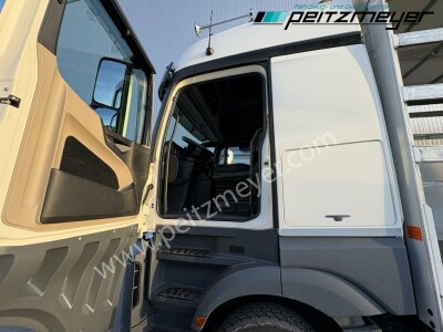 Aufbautyp: Top Ausstattung - Retarder, Klima, Standklima, PPC, 2 Liegen, 1 Hand, Pritschenwagen Festaufbau L x B x H 7.313 x 2.470 x 2.600 mm, Hilfsrahmen verzinkt, Edscha, Heckportaltüren, ohne Seitenplanen