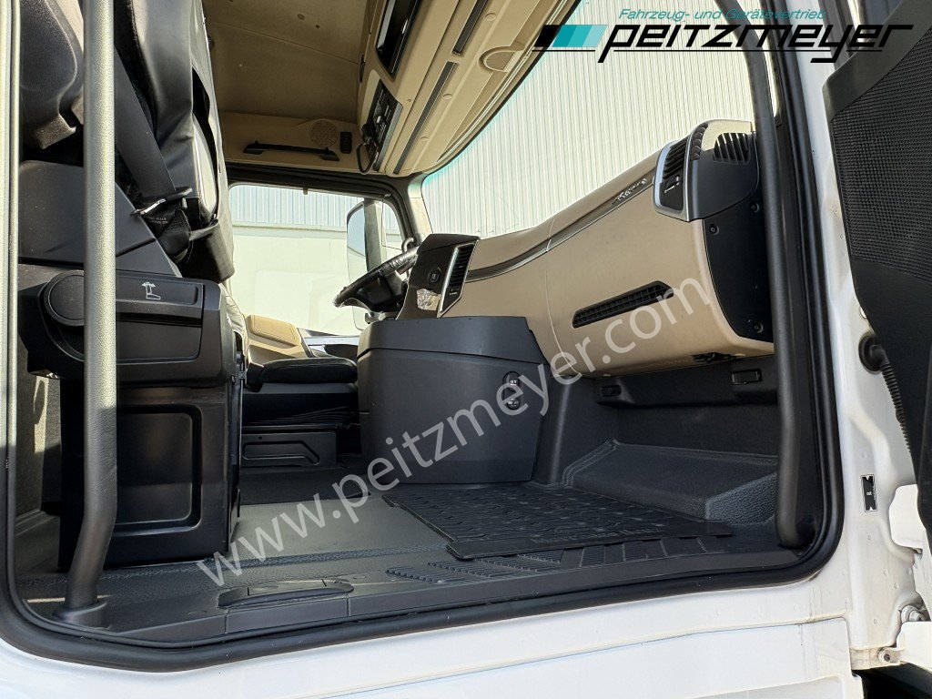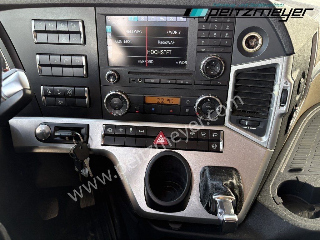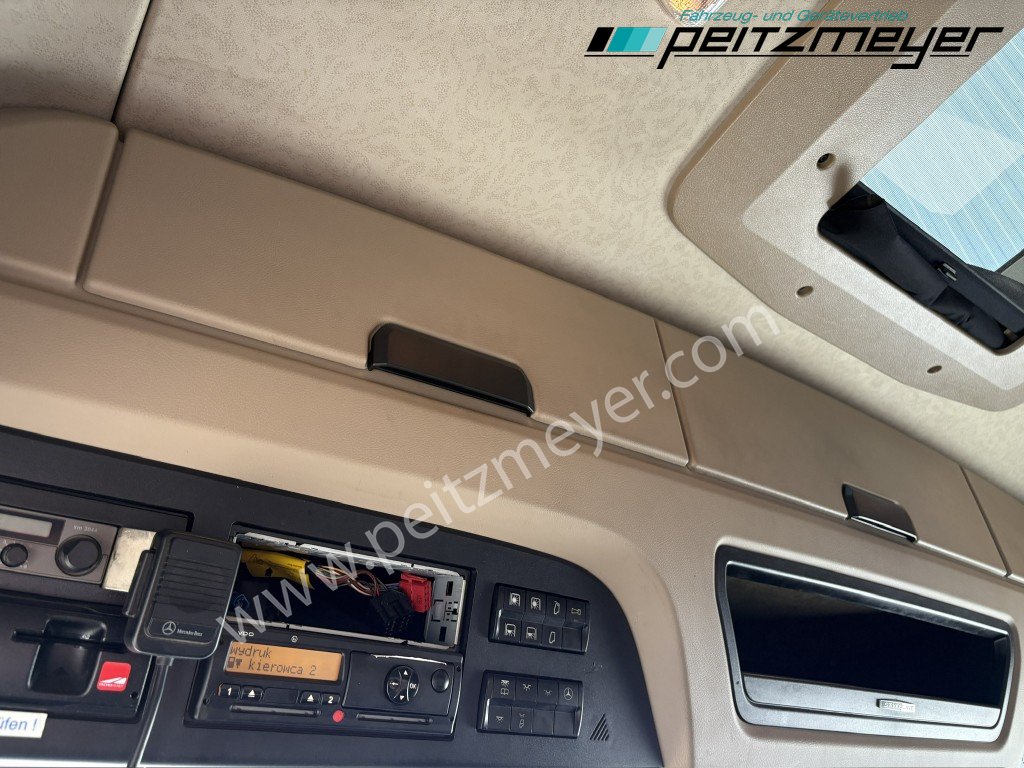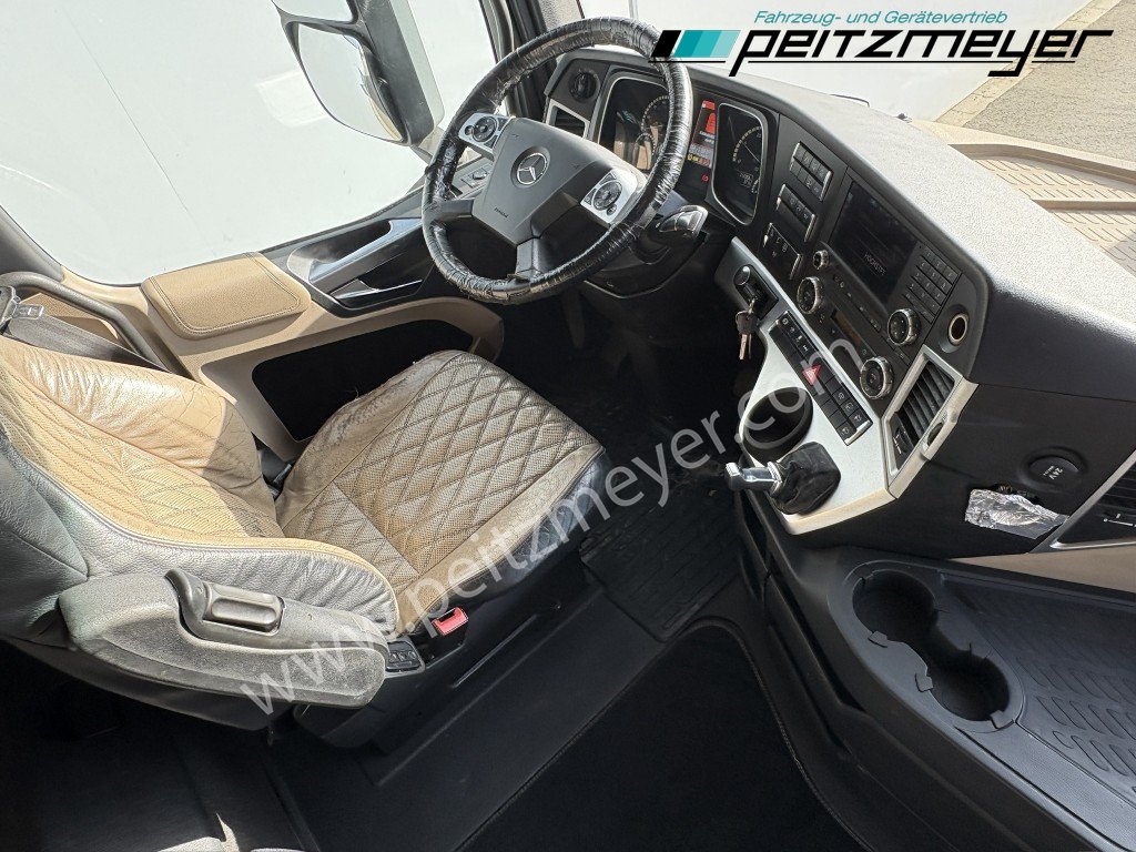 Abgasnorm Euro 6, Fahrerairbag, Radio/Navigationssystem Bluetooth, Komfort, Diebstahlsicherung/ Alarmanlage, Multifunktionslenkrad, Lederlenkrad, Sonnenblende außen, Lufthörner, Rückfahrwarner, Colorverglasung, Mercedes Stern beleuchtet, Dachspoiler, Seitenspoiler, Fahrerhaus Stream Space, Tank 330 L rechts Alu, Alutank 660 L + Adblue 75 L, Alcoa Dura-Bright Alufelgen, 6 Zylinder V-Motor , ABS, Tempomat, Abstandshalte-Assistent, Spurhalteassistent, Stabilitätsregel-Assistent, Aufmerksamkeits-Assistent, Wankregel - Assistent, Aktiver Brems Assistent, PPC (Predictive Powertrain Control), Warmwasser-Zusatzheizung, Zentralverriegelung mit Fernbedienung, Fensterheber elektr., Spiegel elektr. verstellbar, Spiegelheizung, Fahrersitz luftgefedert, 1. Liege unten, Kühlschrank, Klimaautomatik, BI- Xenon, Scheinwerfer Reinigungsanlage, Mercedes-Benz Powershift 3 (Automatikgetriebe), Low-Liner, Vorderachse luftgefedert, Hinterachse luftgefedert, ADR/GGVS - Ausführung nach Typklasse ox, Umweltplakette: 4(Grün), Automatikgetriebe, Diesel, Schadstoffklasse: EURO6, Hinterachsenantrieb, Klimaanlage, Grundfarbe: weiß