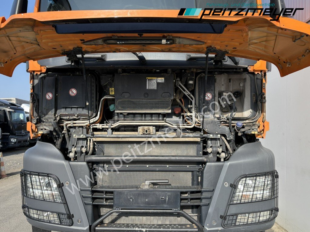 1. Hand, Bordmatic links, 3-Seiten-Kipper, Abgasnorm Euro 6, Radformel 4x4, digitaler Tachograph, Radio, Navigation, Multifunktionslenkrad, Rückwandfenster, Sonnenblende außen, Drucklufthörner, Fahrerhausdach, Rückfahrwarner, Colorverglasung, Auspuff hinter dem Fahrerhaus, Stahlstoßstange, Nahverkehr Fahrerhaus, Intarder, Kipphydraulik, Tank 390 L, Alu, Tempomat, Standheizung, Dachluke, Zentralverriegelung, Fensterheber elektr., Spiegel elektr. verstellbar, Spiegelheizung, Fahrersitz luftgefedert, Sitzheizung Fahrersitz, Kühlschrank, Klimaanlage, Automatikgetriebe 12 Gang, Allradantrieb, hohe Bauart, Diff.- Sperre Vorderachse, Diff.-Sperre Hinterachse, Längs- u. Quersperren, Verteilergetriebe, Geländeuntersetzung, blattgefedert, Anhängerkupplung Maul, 2-Leiter Luftanschluss, Duomatik Luftanschluß, Hydraulikanschluss für Anhänger, Anhängersteckdose 7-polig, Anhängersteckdose ABS, 50er Bolzen, 4 x 4, Umweltplakette: 4(Grün), Automatikgetriebe, Diesel, Schadstoffklasse: EURO6, Klimaanlage, Grundfarbe: orange