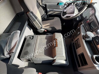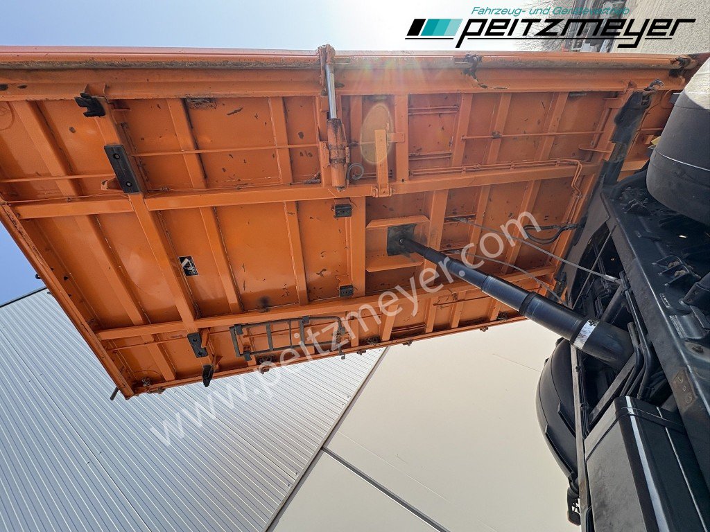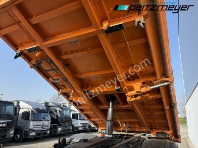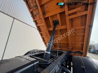 Aufbautyp: Meiller Dreiseitenkipper L x B x H 4.850 x 2.400 x 850 mm, Bordmatic links, Seitenklappe rechts ( federunterstützt ), Klima, Intarder, Standheizung, Kühlschrank, Zug-Ges.Gew. 67.000 KG