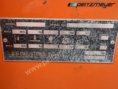 Aufbautyp: Teleskop Arbeitsbühne JLG - E 450 AJ, Bj. 2011, Betr. Std.: 1.110 h, max. Arbeitshöhe 15,77 m, Plattformhöhe 13,72 m, Plattformabmessung 1.460 x 580 mm, Korblast 227 kg, Korb und Bodensteuerung, Gewicht 6697 kg, Radstand 2.010 mm, Gesamtmaße in Länge x Breite x Höhe 6.450 x 1.750 x 2.010 mm, Antrieb über 48 Volt Elektomotor (4x2) mit integriertem Ladegerät