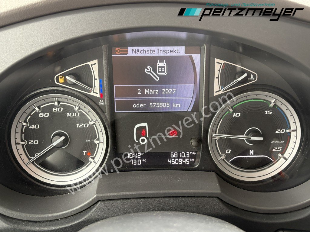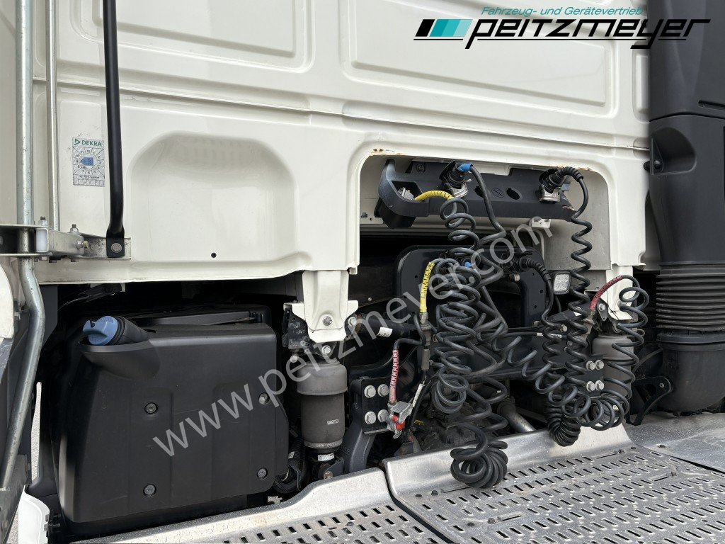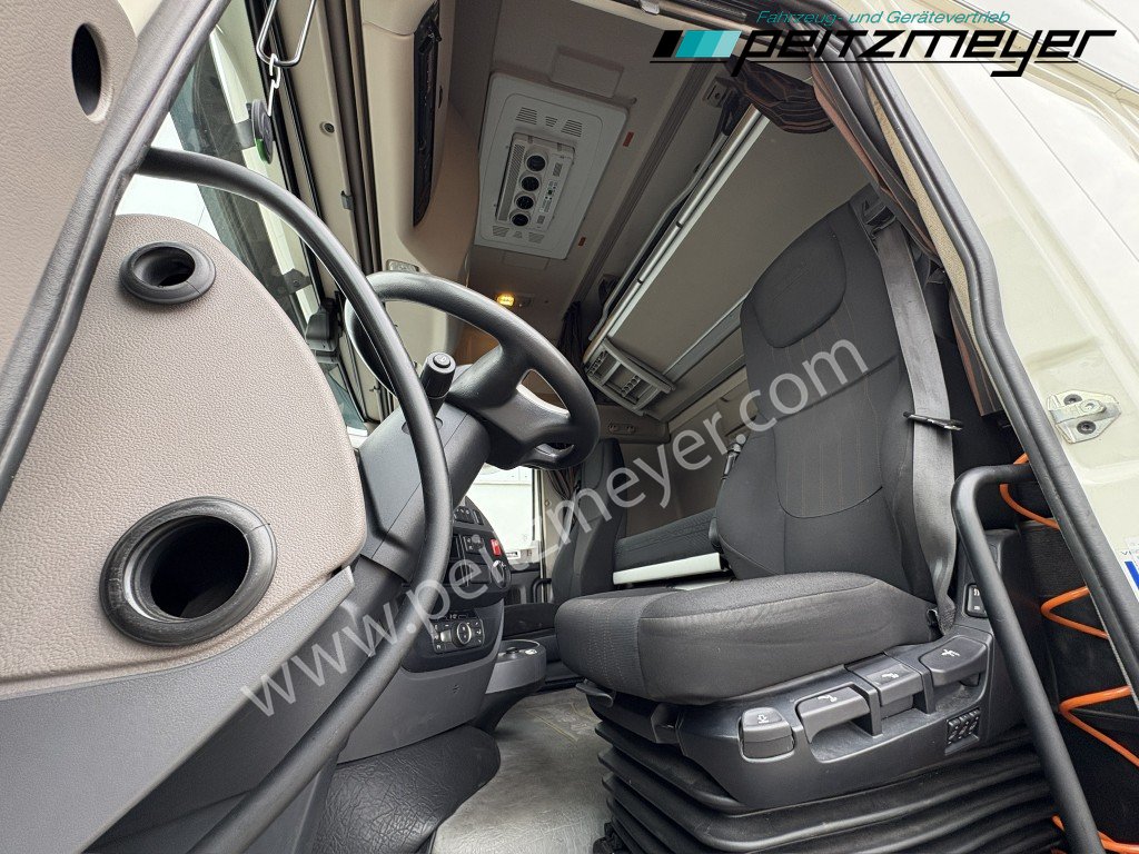 Abgasnorm Euro 6, digitaler Tachograph, Sonnenblende, Radio, Navigation, Multifunktionslenkrad, Sonnenblende außen, Colorverglasung, Dachspoiler, Seitenspoiler, Fernverkehr Fahrerhaus, Luftfederung Fahrerhaus, Retarder, Nebenantrieb, Alutank 845 L + 430 L, ABS, Tempomat, Standheizung, Hochdach, Zentralverriegelung mit Fernbedienung, Fensterheber elektr., Spiegel elektr. verstellbar, Spiegelheizung, Fahrersitz luftgefedert, 2. Liege oben, Sitzheizung Fahrersitz, Armlehne für Fahrersitz, Kühlschrank, Klimaautomatik, Dachklimaanlage, Sky-Lights, Abbiegeassistent mit Seitenkamera, Automatikgetriebe 12 Gang, Diff.-Sperre Hinterachse, Hinterachse luftgefedert, Vorderachse blattgefedert, Umweltplakette: 4(Grün), Automatikgetriebe, Diesel, Schadstoffklasse: EURO6, Hinterachsenantrieb, Klimaautomatik, Grundfarbe: weiß