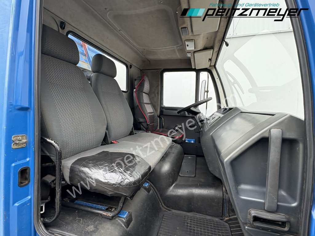 Abgasnorm Euro 2, analoger Tachograph, Nahverkehr Fahrerhaus, Fahrersitz luftgefedert, Hinterachse blattgefedert, Anhängerkupplung Kugelkopf 3,5 t., Anhängerkupplung Maul, Anhängersteckdose 7-polig, 40er Bolzen, Beifahrersitzbank, Umweltplakette: 2(Rot), Grundfarbe: blau, Diesel, Schadstoffklasse: Euro2, Hinterachsenantrieb, keine Klimaanlage
