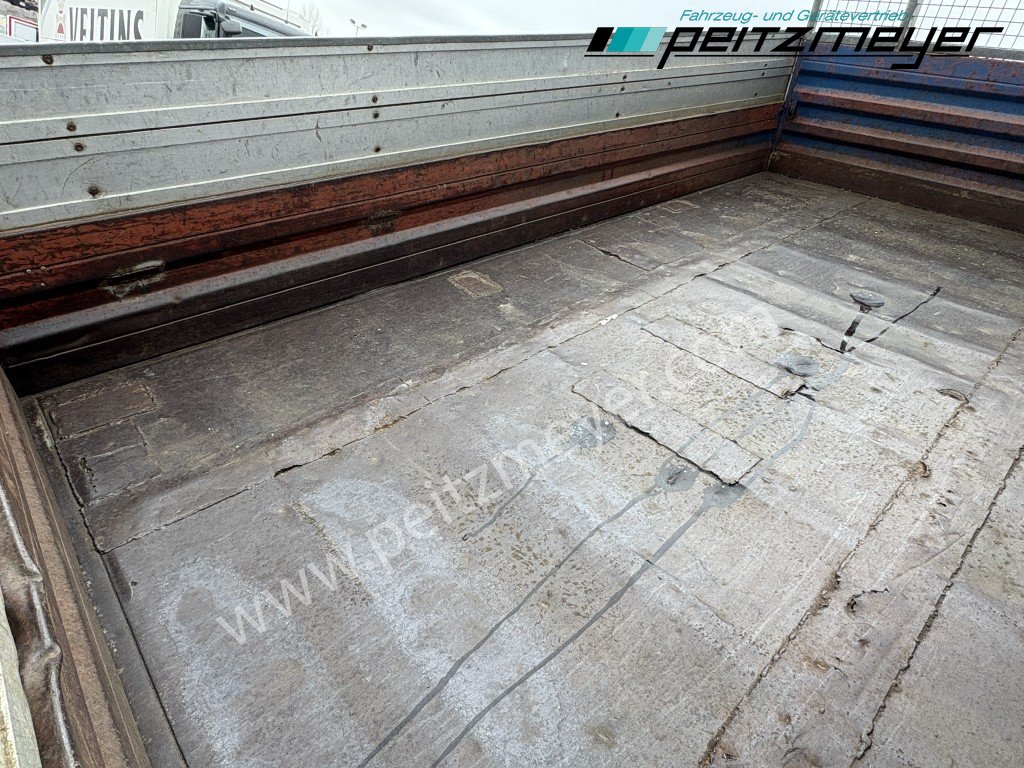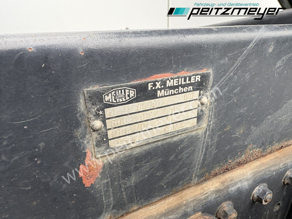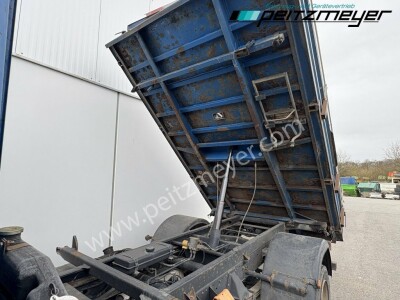 Aufbautyp: Meiller Dreiseitenkipper L x B x H 3.800 x 2.200 x 400 + 360 mm, original KM - Stand 213.586 km, 2. Hand, Kugelkopf + Maulkupplung, sehr gut bereift