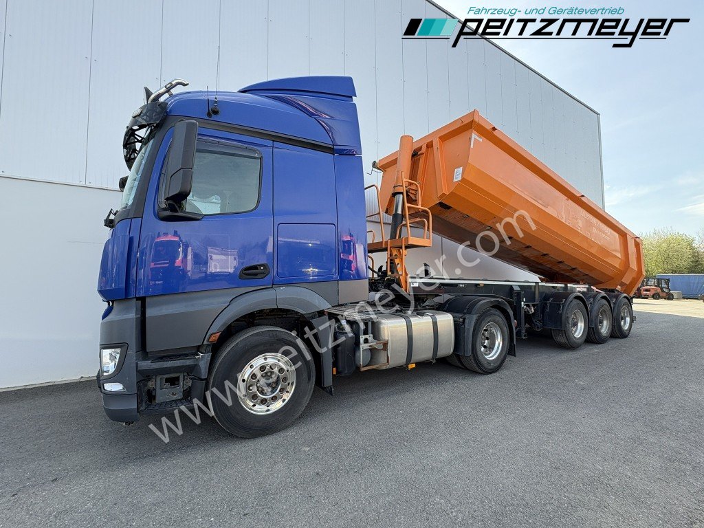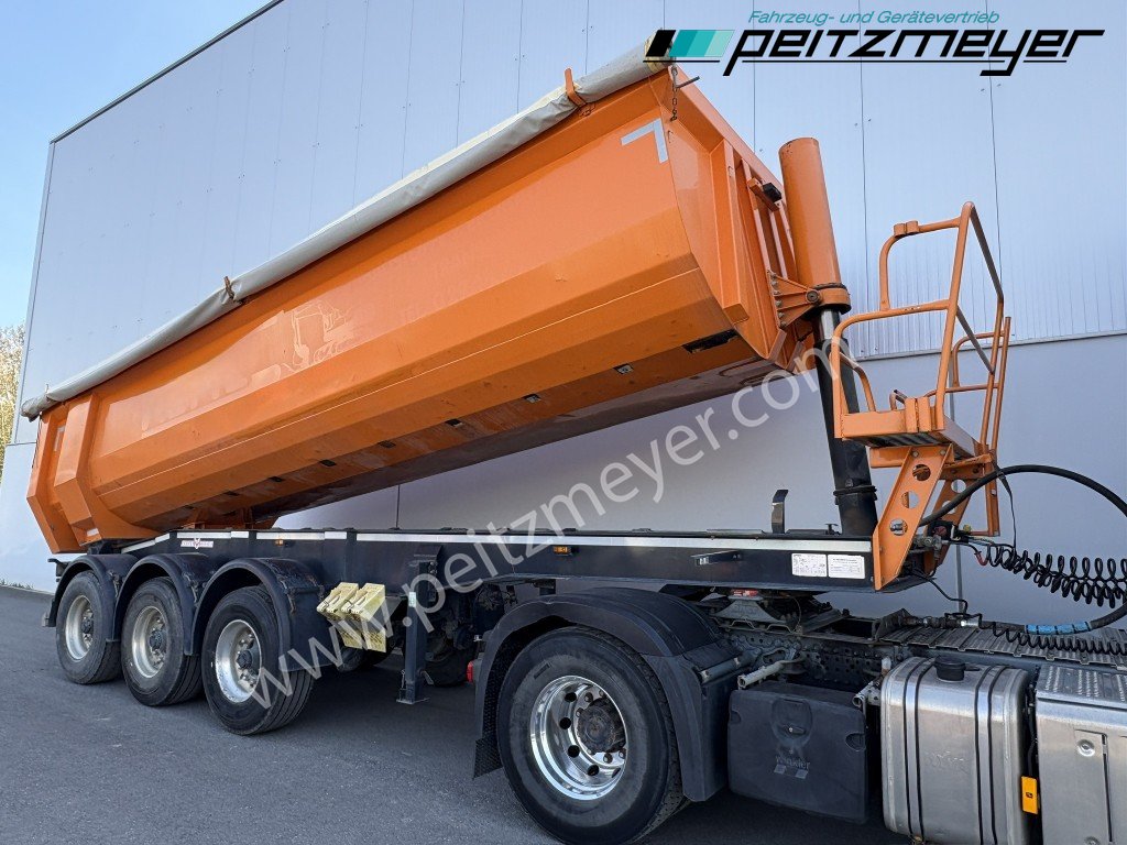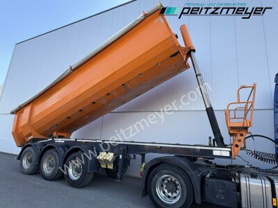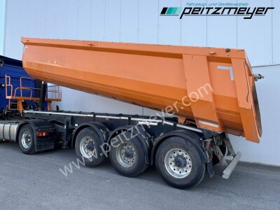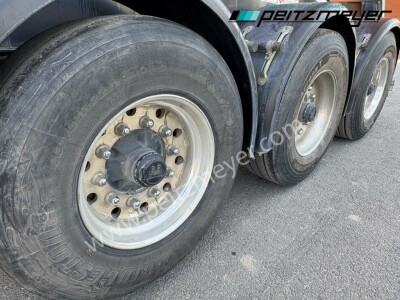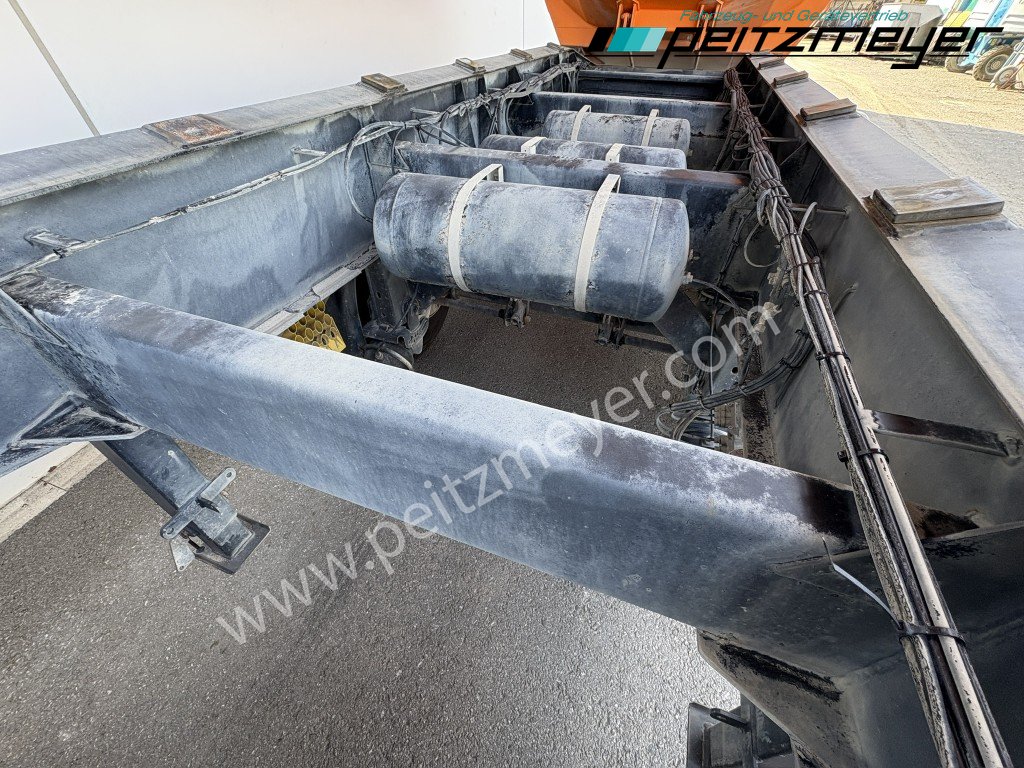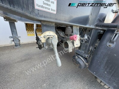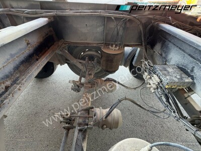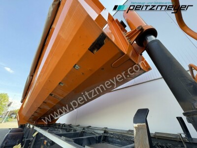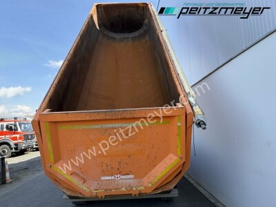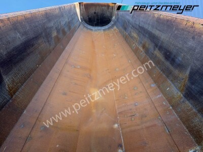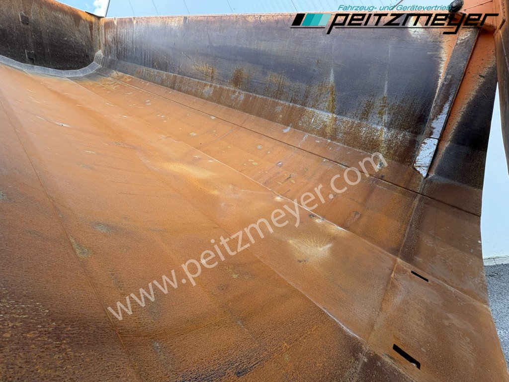 Aufbautyp: Stahl - Stahlmulde ca. 25 m³, L x B x H 7.360 x 2.340 x 1.500 mm, Hardox 450 - ( 5 mm Boden / 4 mm Seitenwände ), BPW - Achsen luftgefedert, 1. Achse liftbar, Trommelbremse, Alufelgen, Podest, Rollplane, Elektrik 24 V - 15 + 2 x 7polig, ABS, Luftanschluß rot/gelb, Fallstützen, Leergewicht 5.950 kg