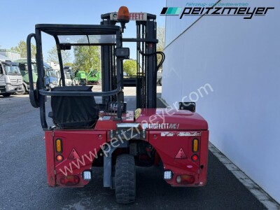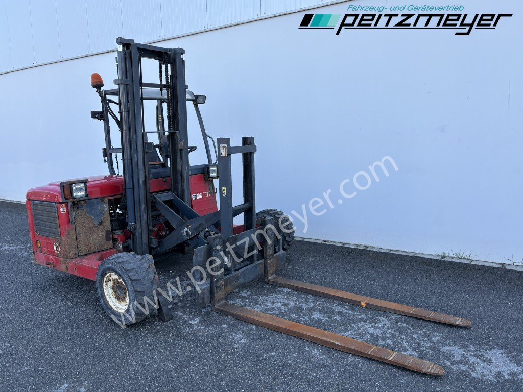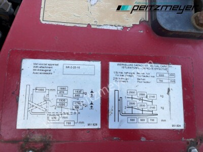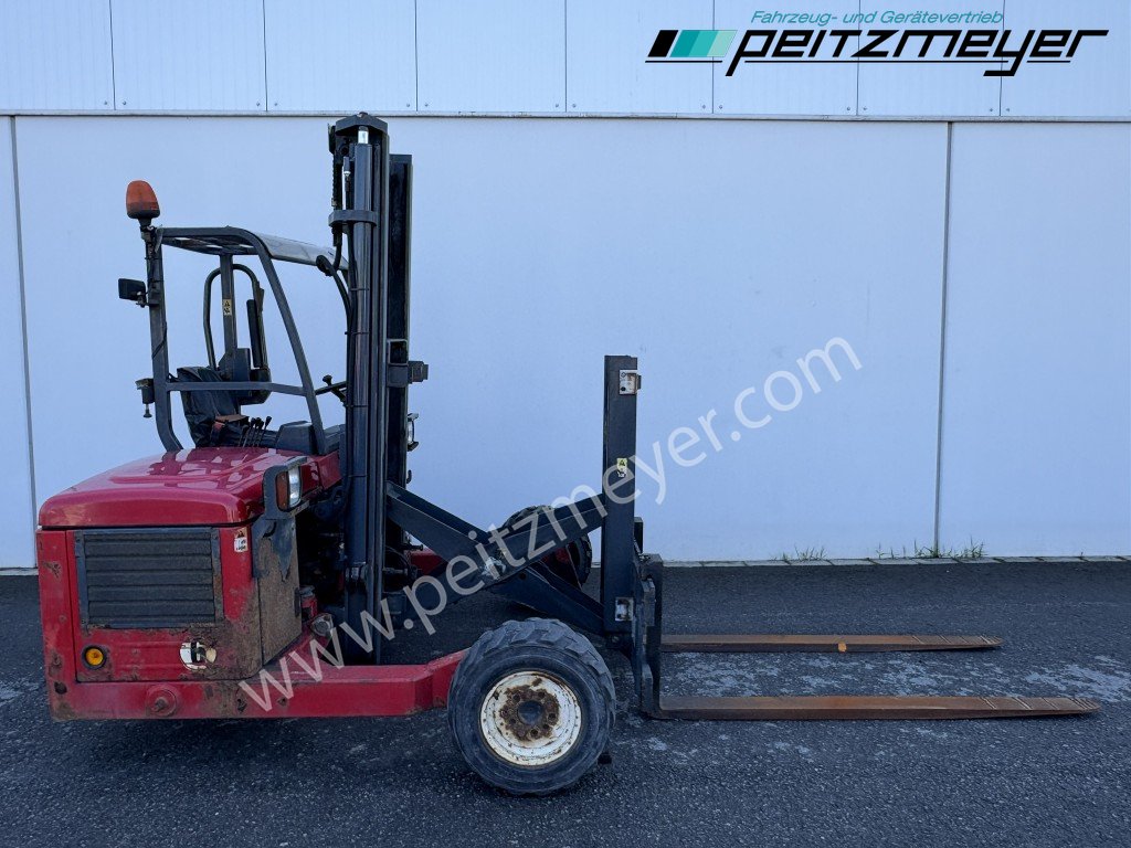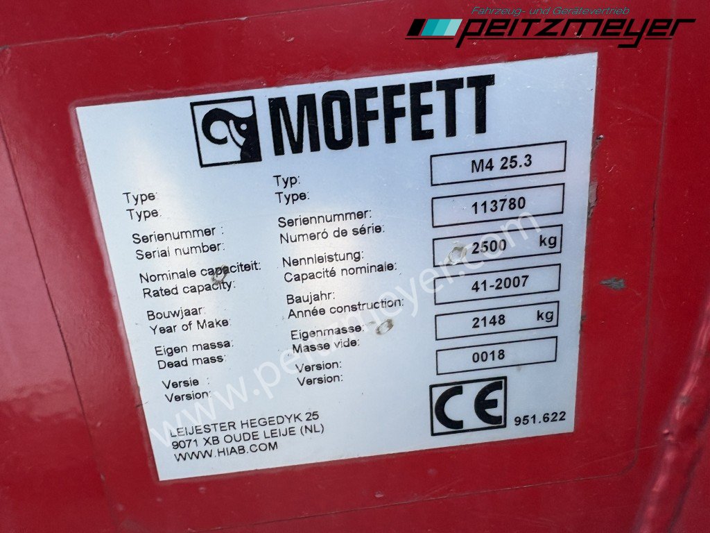 Aufbautyp: Mitnahmestapler Moffet M4 25.3, Betr. Std. abgelesen: 2.517 h, Hubkraft 2,5 t, Max. Hubhöhe 3.000 mm, SR25-10 Ausschub 1.000mm, Allradantrieb, 3 Zylinder Kubota - Dieselmotor, Zinkenverstellung, feste Radarme Radstand 1.700 mm, Abstützung vorn