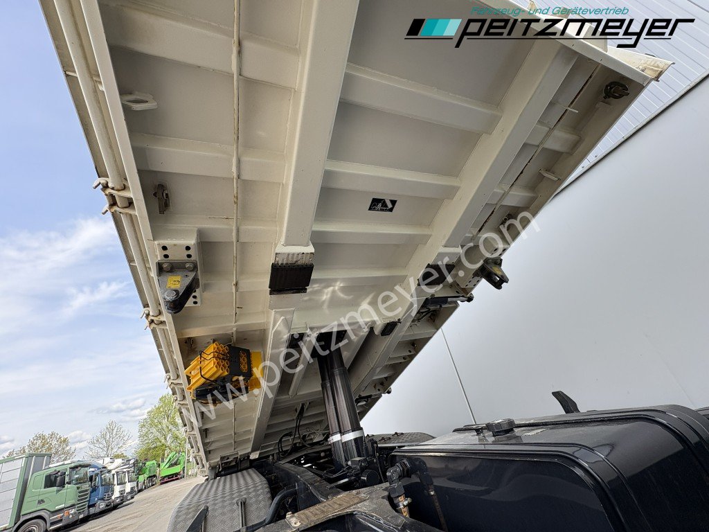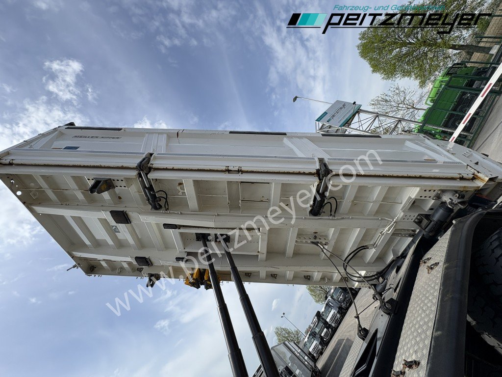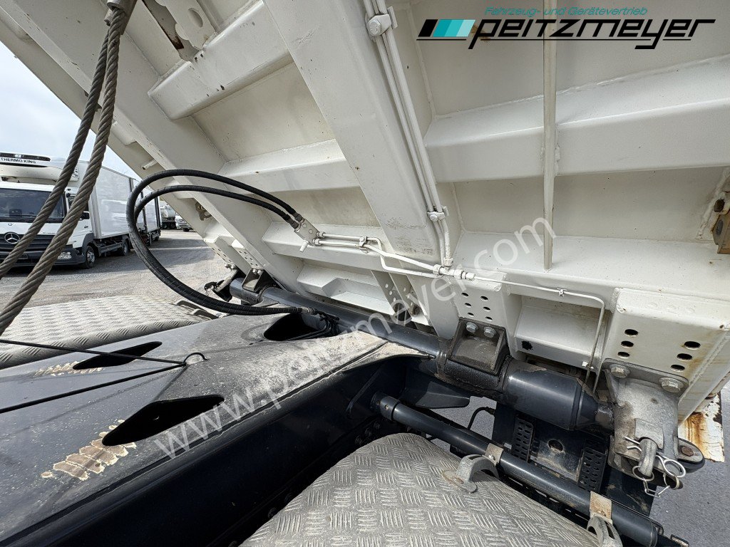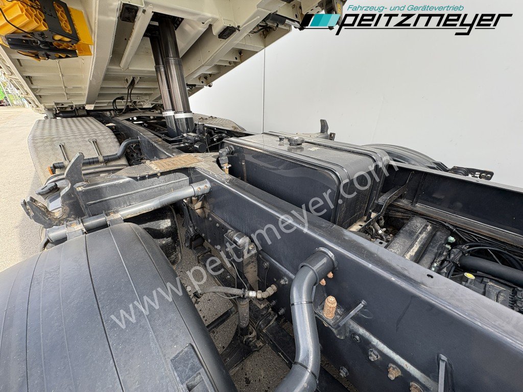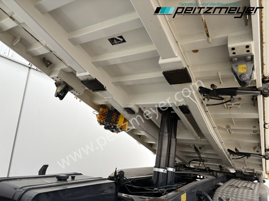 1. Hand, Bordmatic links, 3-Seiten-Kipper, Abgasnorm Euro 6, Radformel 8x4/4, digitaler Tachograph, Radio/Navigationssystem Bluetooth, Komfort, CB Funkgerät, Multifunktionslenkrad, Rückwandfenster, Sonnenblende außen, Colorverglasung, Auspuff hinter dem Fahrerhaus, Nahverkehr Fahrerhaus, Intarder, Nebenantrieb, Kipphydraulik, Tempomat, Dachluke, Zentralverriegelung, Fensterheber elektr., Spiegel elektr. verstellbar, Spiegelheizung, Fahrersitz luftgefedert, Sitzheizung Fahrersitz, Klimaautomatik, Rundumkennleuchte orange, Automatikgetriebe 12 Gang, Diff.-Sperre Hinterachse, Längs- u. Quersperren, blattgefedert, Anhängerkupplung Maul, Anhängersteckdose 15 polig, Anhängersteckdose ABS, Anhängerbremse 2-Leitung (EG), 40er Bolzen, Umweltplakette: 4(Grün), Automatikgetriebe, Diesel, Schadstoffklasse: EURO6, Hinterachsenantrieb, Klimaautomatik, Grundfarbe: weiß