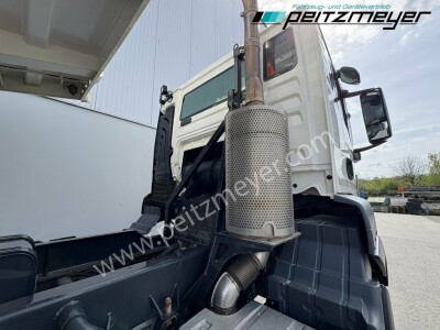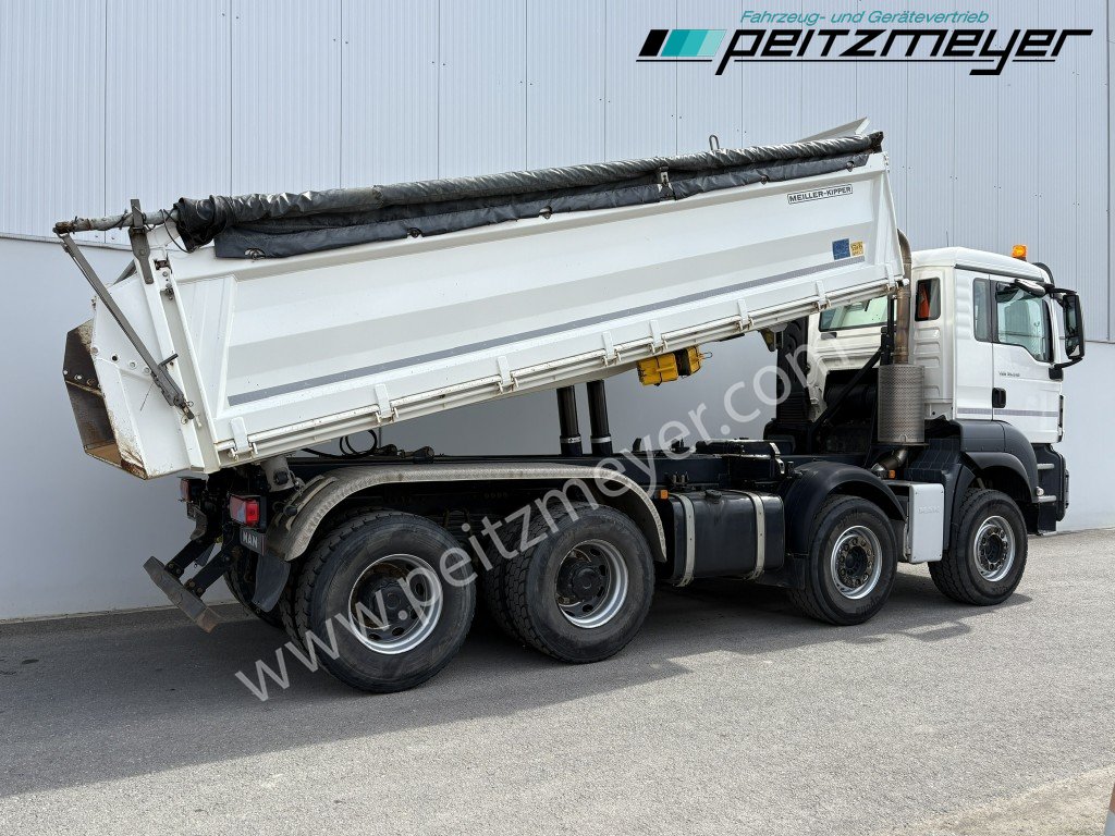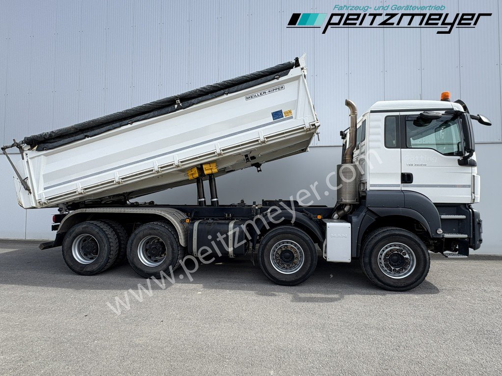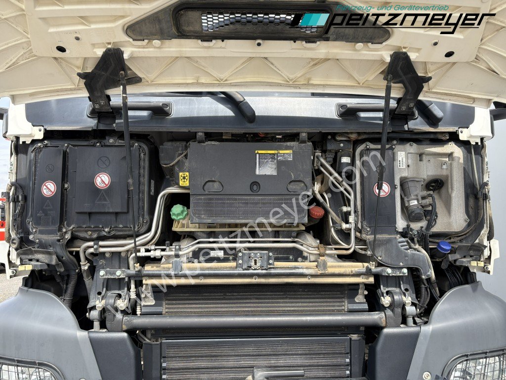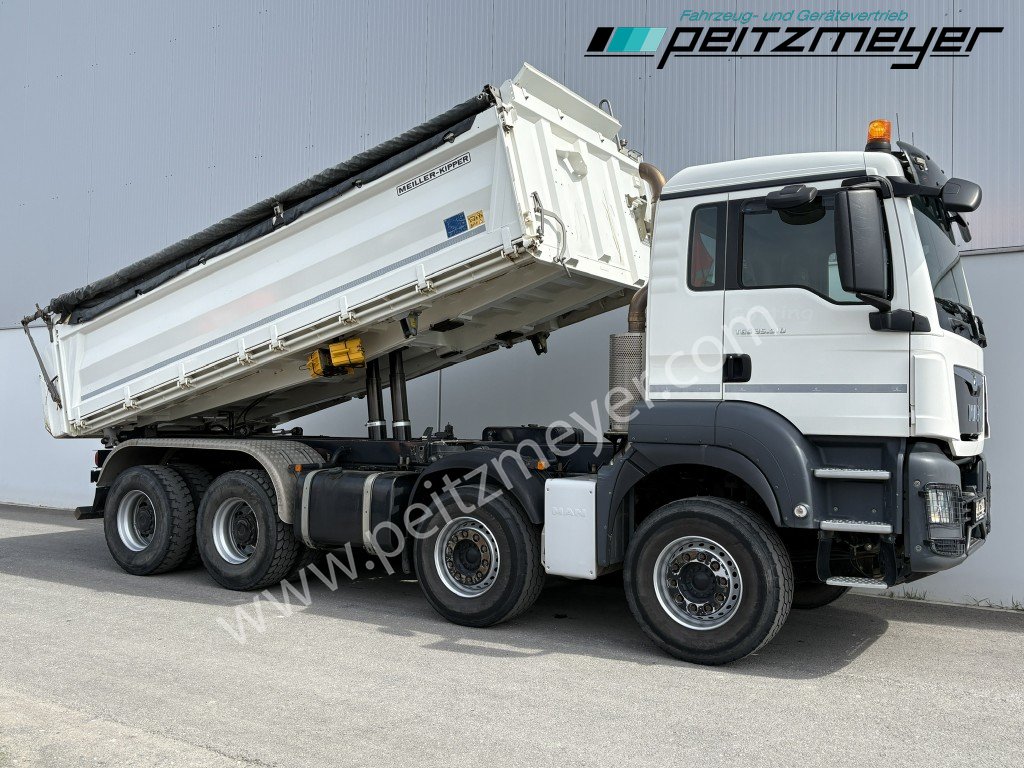 1. Hand, Bordmatic links, 3-Seiten-Kipper, Abgasnorm Euro 6, Radformel 8x4/4, digitaler Tachograph, Radio/Navigationssystem Bluetooth, Komfort, CB Funkgerät, Multifunktionslenkrad, Rückwandfenster, Sonnenblende außen, Colorverglasung, Auspuff hinter dem Fahrerhaus, Nahverkehr Fahrerhaus, Intarder, Nebenantrieb, Kipphydraulik, Tempomat, Dachluke, Zentralverriegelung, Fensterheber elektr., Spiegel elektr. verstellbar, Spiegelheizung, Fahrersitz luftgefedert, Sitzheizung Fahrersitz, Klimaautomatik, Rundumkennleuchte orange, Automatikgetriebe 12 Gang, Diff.-Sperre Hinterachse, Längs- u. Quersperren, blattgefedert, Anhängerkupplung Maul, Anhängersteckdose 15 polig, Anhängersteckdose ABS, Anhängerbremse 2-Leitung (EG), 40er Bolzen, Umweltplakette: 4(Grün), Automatikgetriebe, Diesel, Schadstoffklasse: EURO6, Hinterachsenantrieb, Klimaautomatik, Grundfarbe: weiß